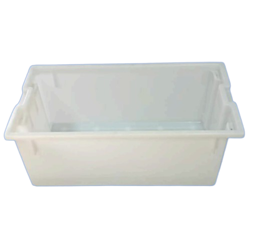 Tipo: Apilable, piso y paredes ciegos. Ideal: Frigoríficos, avícolas, carnicerías y supermercados. Fabricado en polietileno de alta densidad, aprobado por Bromatología y Senasa. Medidas: 79 x 44 x 29 cm. Color Blanco.