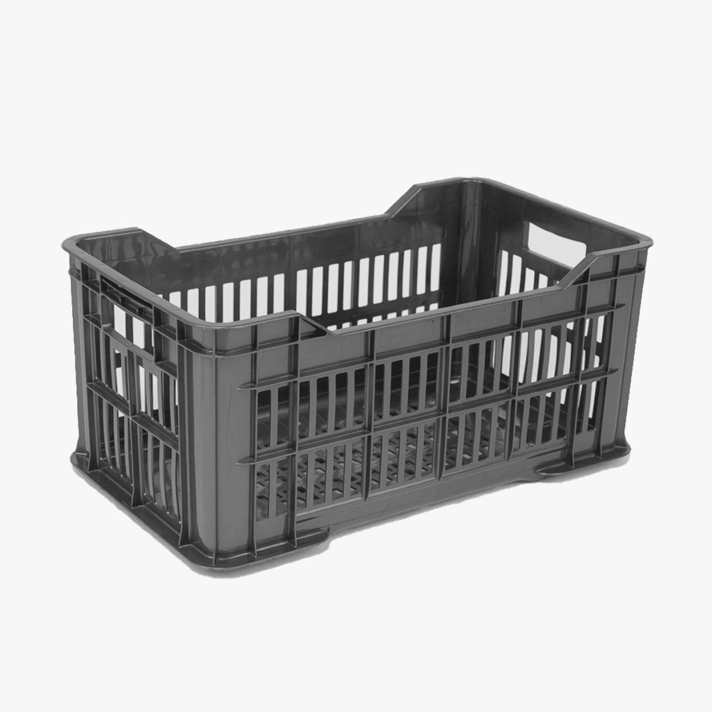 Tipo: Apilable, piso y paredes ventilados. Ideal: Verdulerías, cosecha Fabricado en polietileno de alta densidad, aprobado por Bromatología y Senasa. (Reciclado). Medidas: 52,5 x 31 x 24 cm. Color Negro.